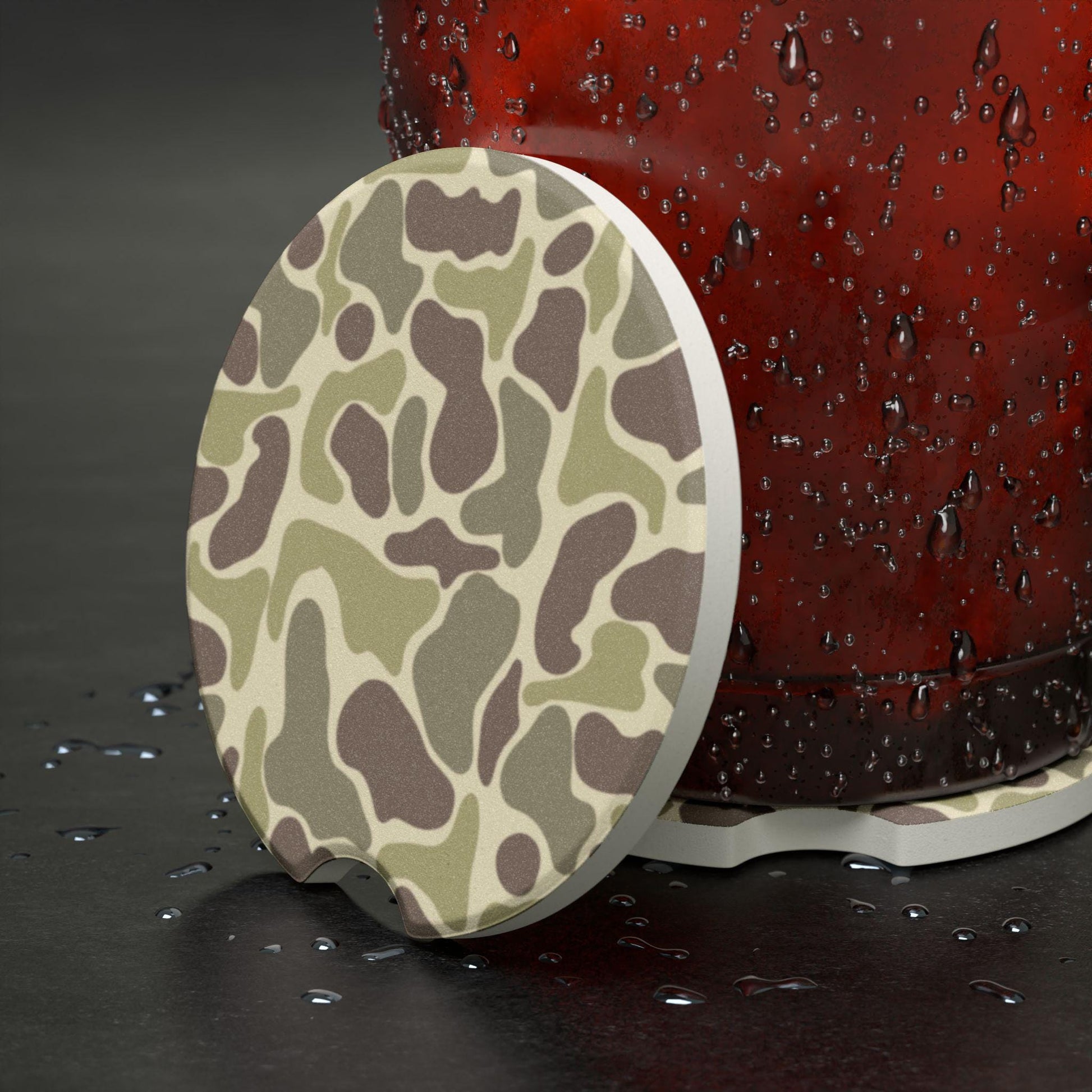 Car Coaster, Duck Camo Pattern Soapstone, Cup Holder Coasters, Absorbent Stone Coaster Set, Vehicle Accessories, Camouflage Design, Auto