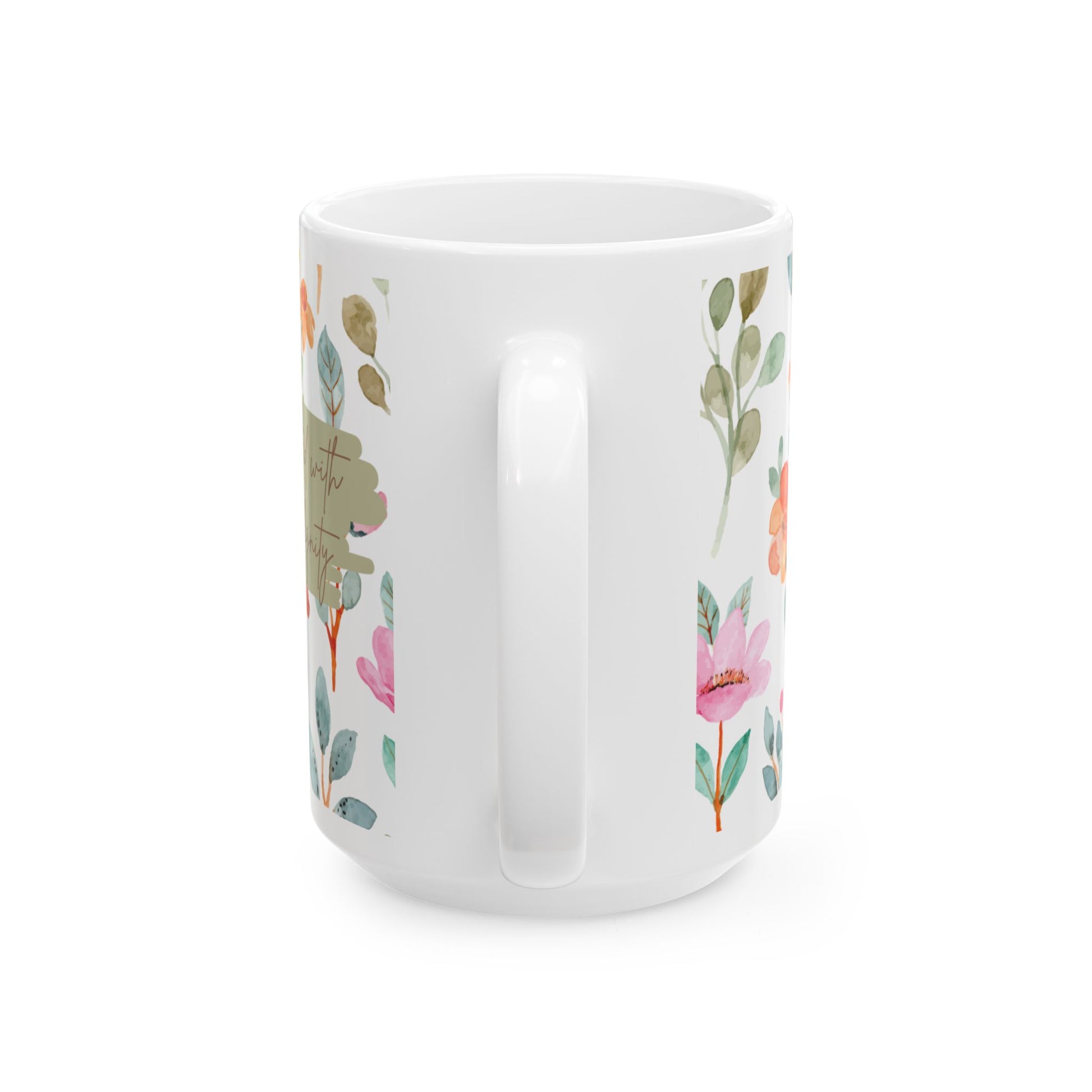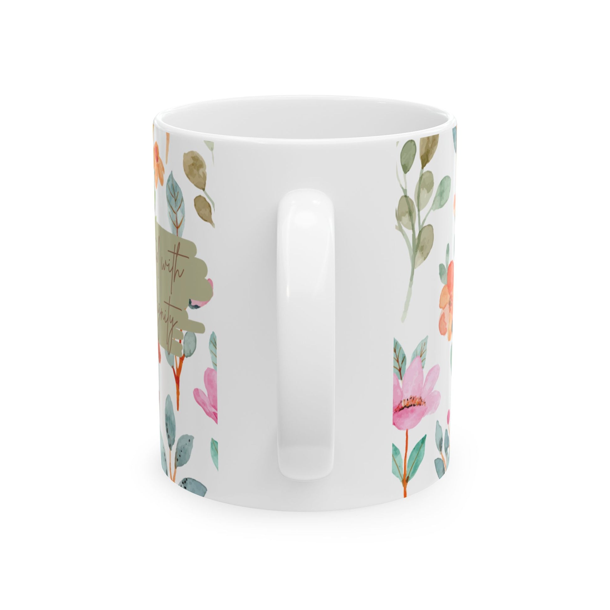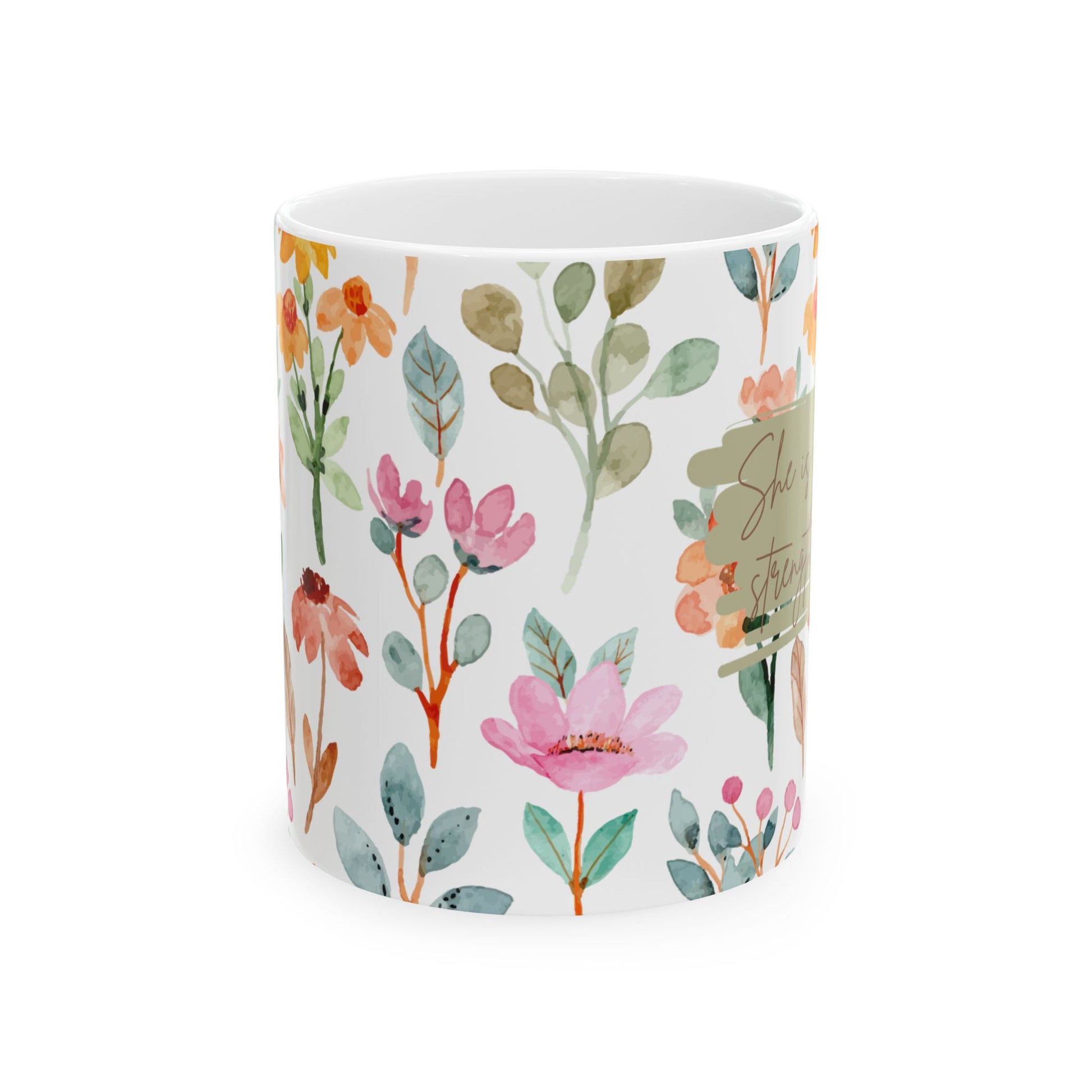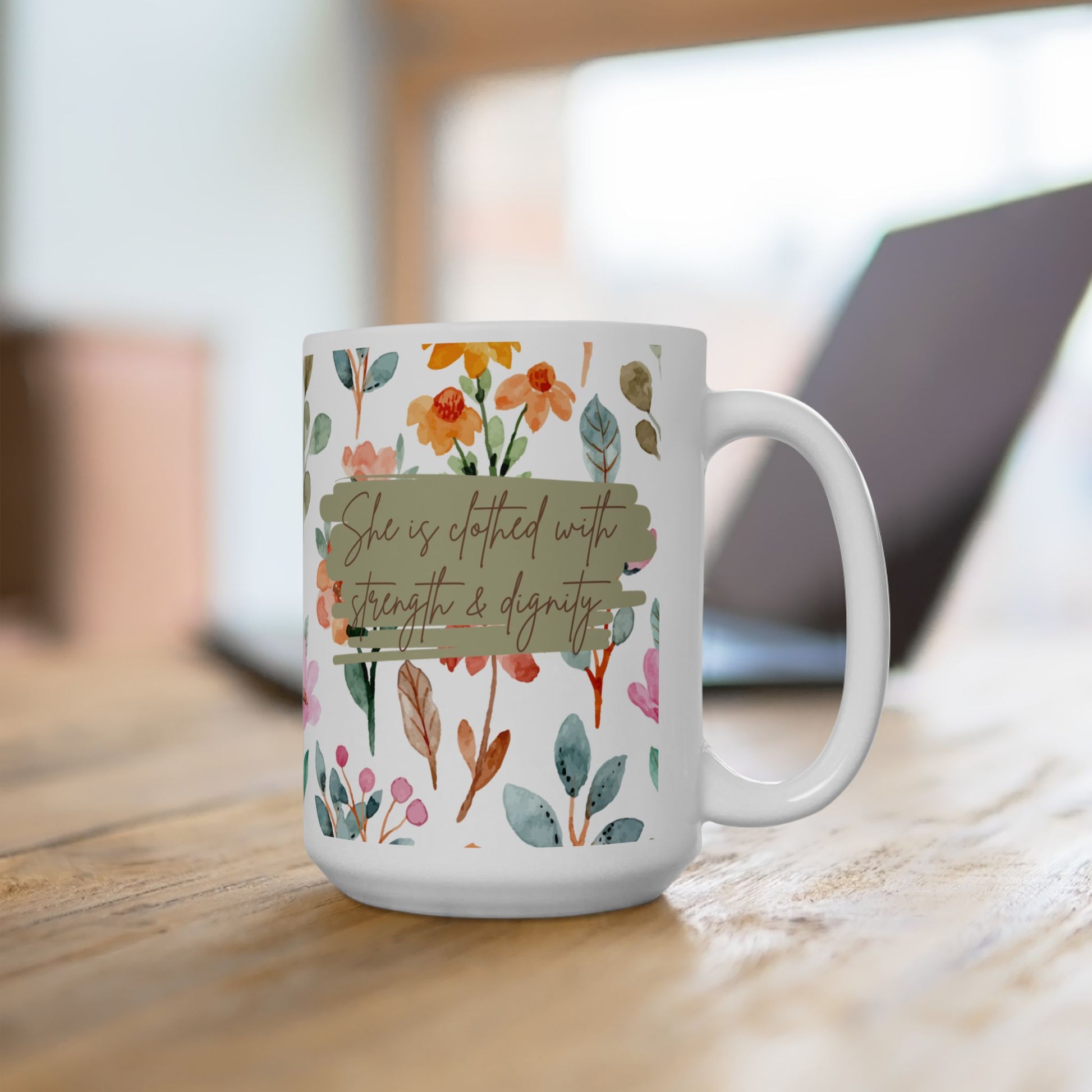 Floral Inspirational Ceramic Mug "She is Clothed with Strength & Dignity" - 11oz & 15oz