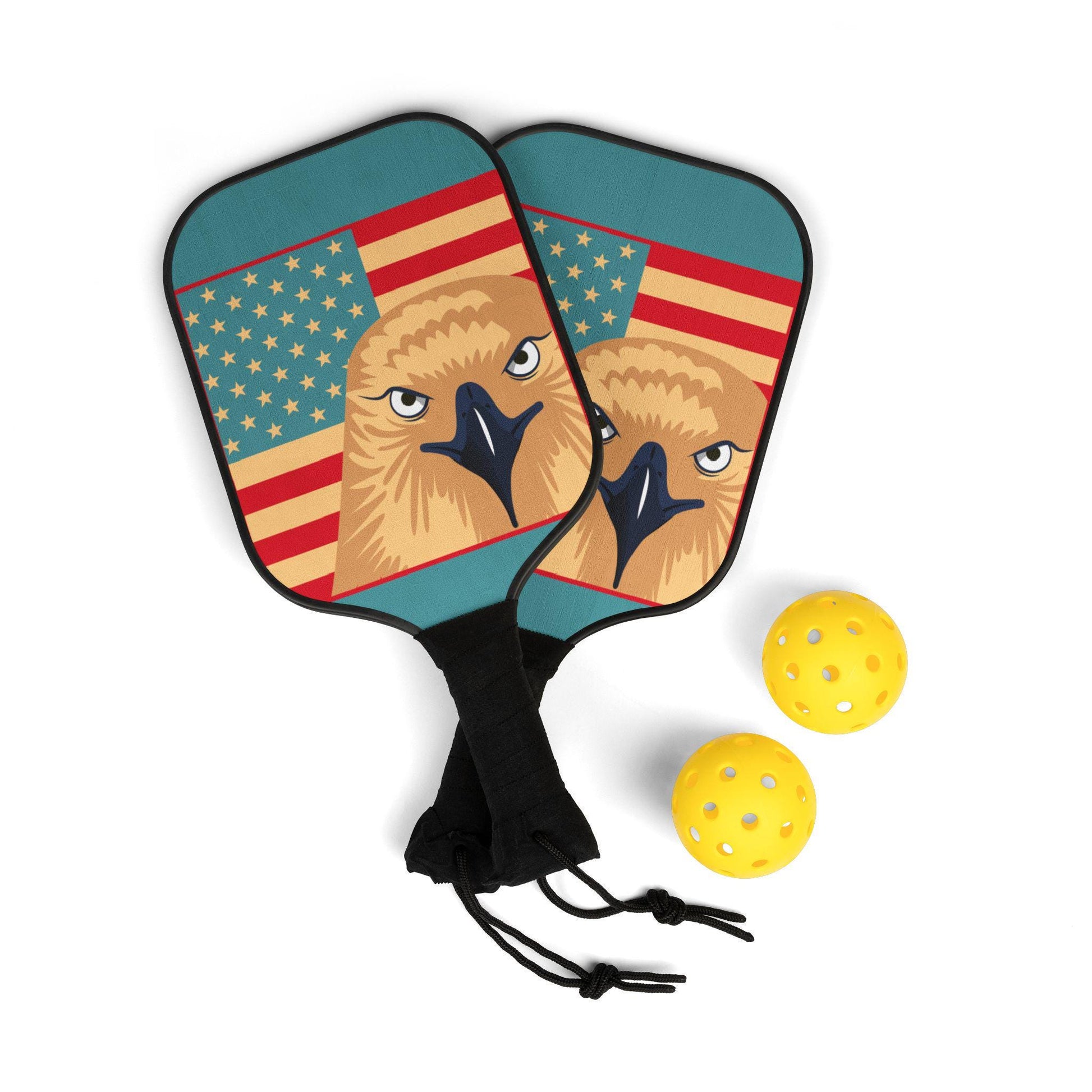 Patriotic Pickleball Paddle Set - Sports Gear for Pickleball Lovers, Fun Activity Kit, USA Flag Design, Gifts for Players, Summer Sports