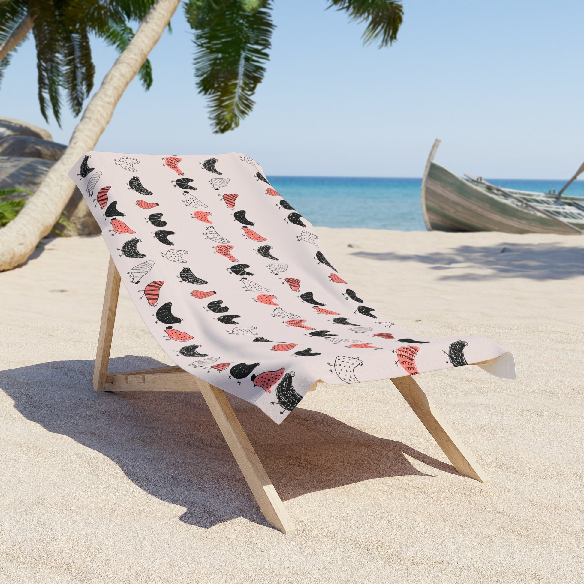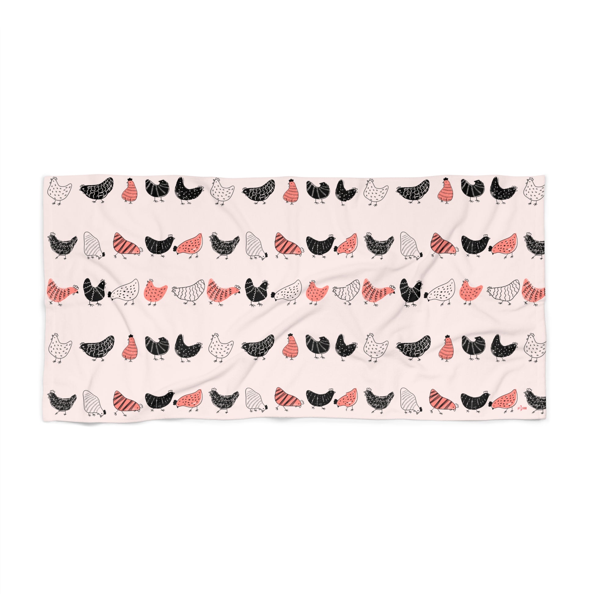Roost & Ruffle Charming Chicken Pattern Beach Towel | Fun and Quirky Towel for Beach Trips, Pool Days, Picnics, Gifts for Farmers