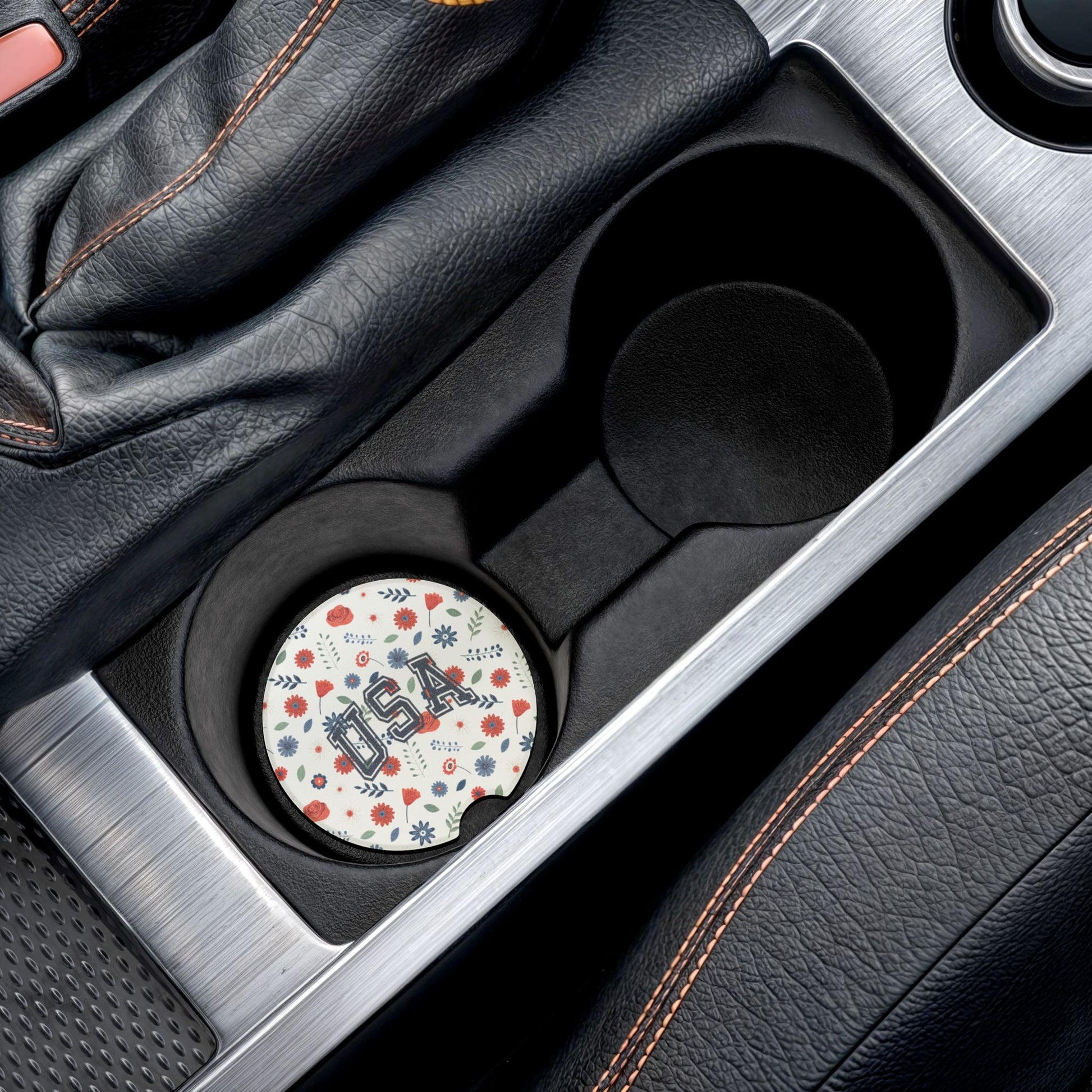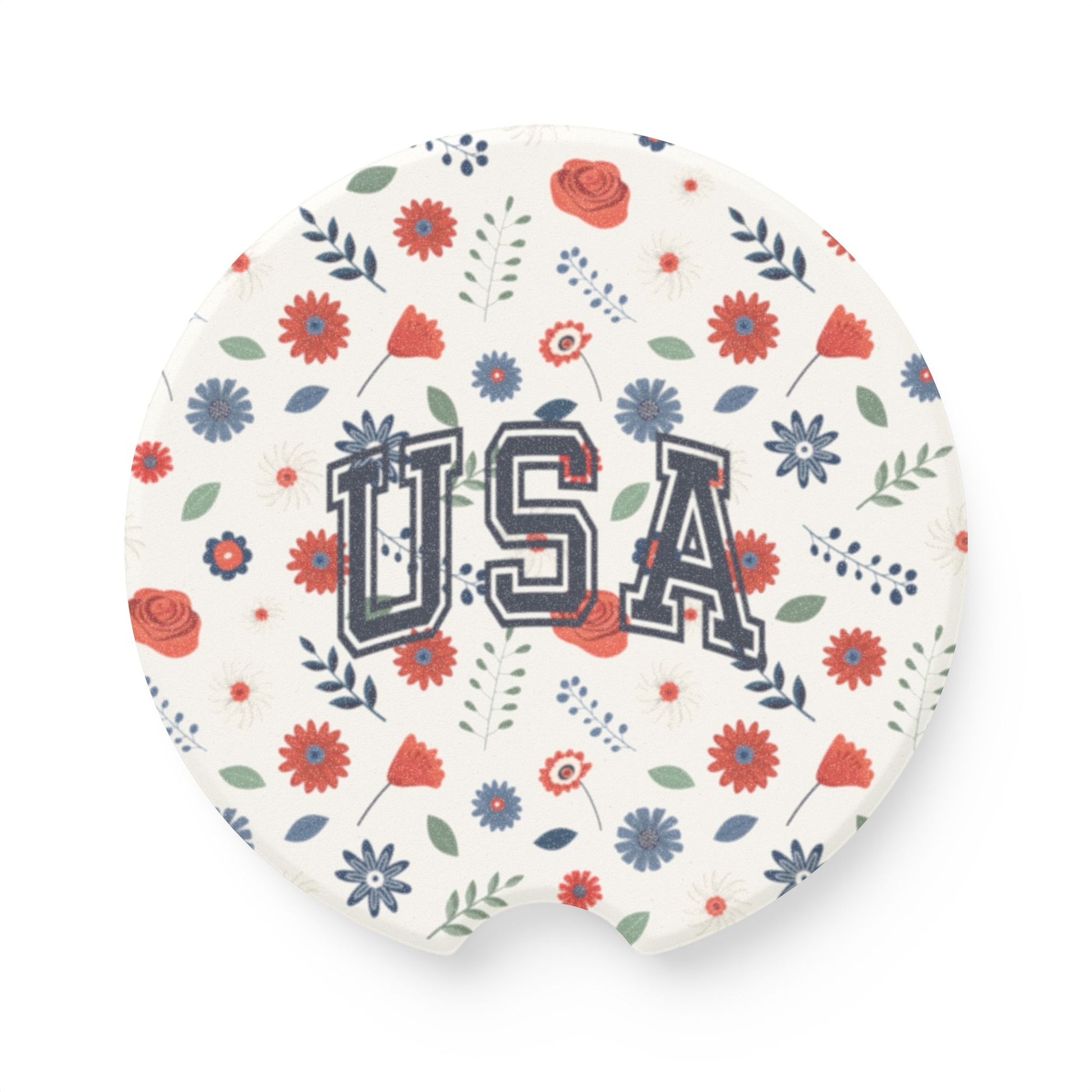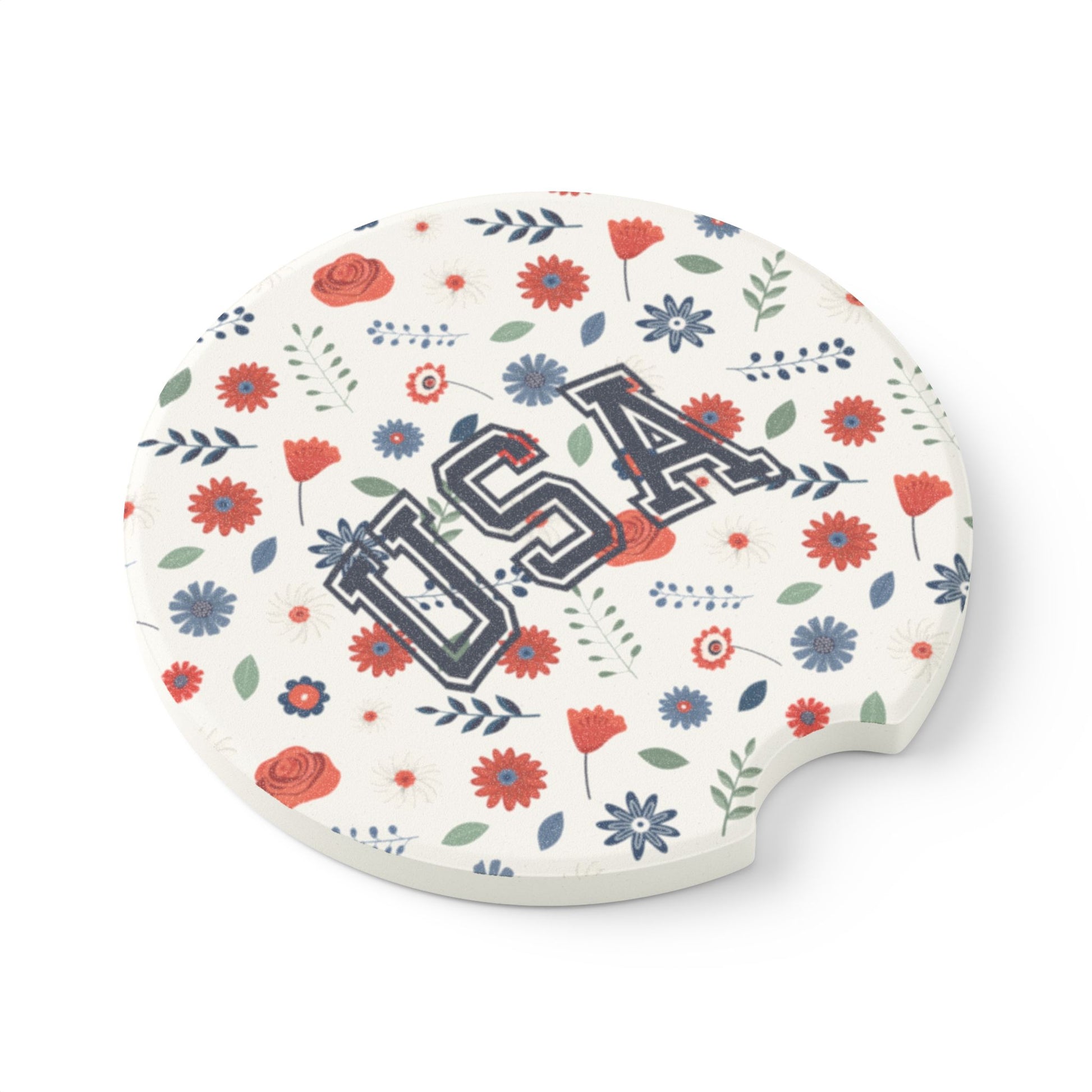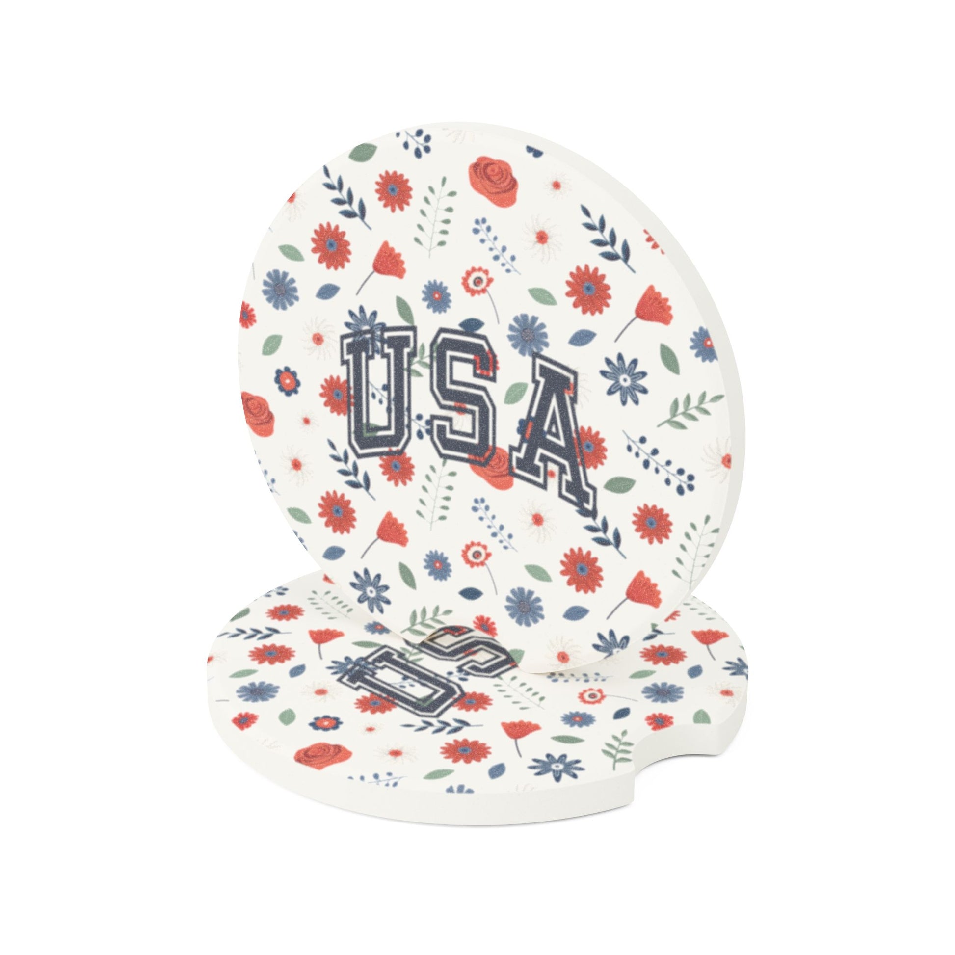 USA Floral Soapstone Car Coaster, Car Accessories for Gift, Home Decor, USA Pride, Summer Events, Floral Design